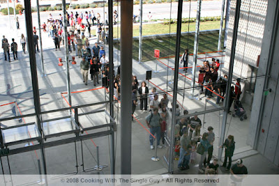 You have to be prepared for a lot of standing in lines, at least during these early days. So here's a long line for the coffee cart and snack stand in the courtyard.